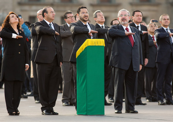 Representantes de los tres poderes de la Unión, rindieron honores al movimiento estudiantil de 1968, izando la bandera a media asta en la Plaza de la Constitución, ceremonia encabezada por el titular de la Secretaría de Gobernación, Alfonso Navarrete Prida.